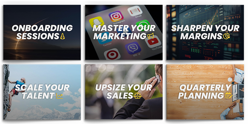 - These are fortnightly 90-minute intensives that establish the fundamentals of your business in 6 specialised sessions.